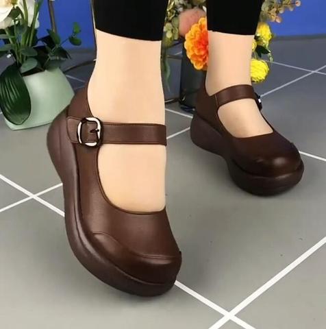 Zapatos de mujer Mary Jane Zapatos de cuero de suela gruesa Zapatos cómodos de cuero de suela blanda
